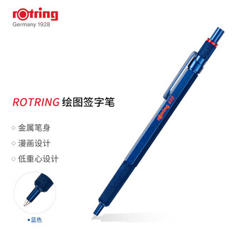 红环(rotring)按压式圆珠笔0.7mm 德国高颜值金属笔身专业绘图-600系列蓝色单支装