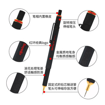 红环(rotring)自动铅笔0.7mm 铅芯不易断 可伸缩笔头德国高颜值绘图-800系列黑色单支装