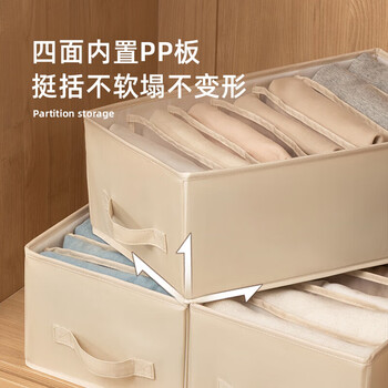 EACHY衣服裤子收纳盒子衣柜收纳神器分隔牛仔裤收纳箱 米色-9格