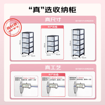 可移动深三层柜 黑框透明抽屉 *1