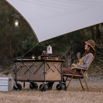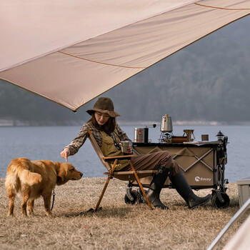 北欢BAVAY户外露营车营地车溜娃买菜狗狗宠物推车 带刹车S01棕