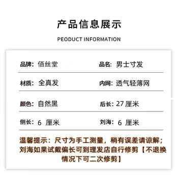 佰丝堂假发男短发中年男士寸头短直发全头套100%真人发丝光头假发套真发