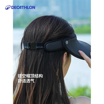 迪卡侬空顶帽遮阳太阳帽子女款男夏季遮脸户外黑灰色可调节-4595516