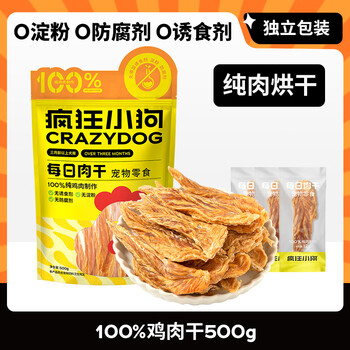 疯狂小狗鸡肉干狗狗零食大礼包宠物磨牙训练奖励 鸡胸肉干500g