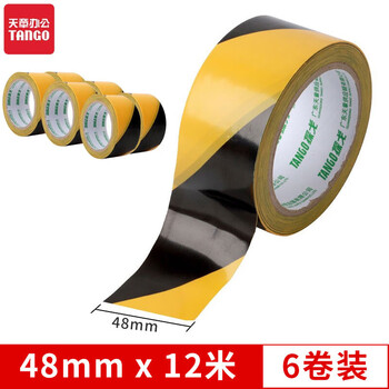 天章 (TANGO)PVC警示胶带黑黄斜纹48mm*12米*6卷装防台风斑马工厂仓库地标线胶带地板面安全胶带定位标识贴警示