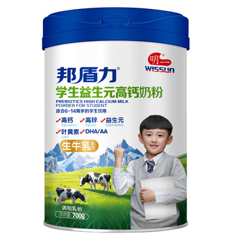 明一(wissun)邦盾力学生益生元高钙奶粉儿童青少年牛奶粉700g高锌6-14岁含DHA