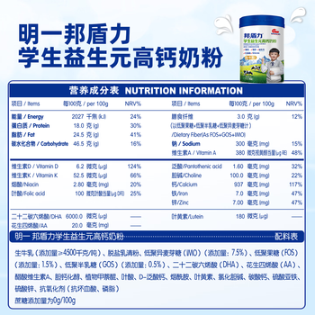 明一邦盾力学生益生元高钙奶粉儿童青少年牛奶粉700g