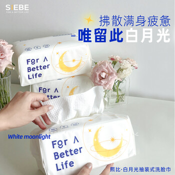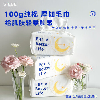 熙比!白月光百克洗脸巾女一次性特厚抽取式洁面美容棉柔巾 80抽*3包
