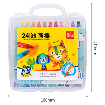 得力(deli)24色学生三角杆丝滑油画棒 儿童蜡笔绘画笔(内赠5张填色卡)72072 规格:24色 类别:油画棒
