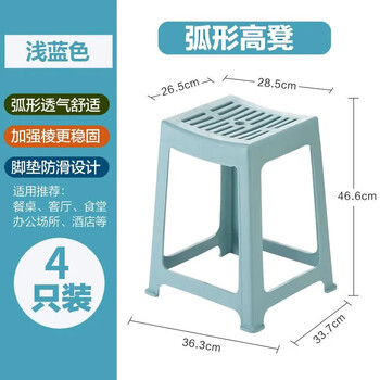 茶花 塑料凳子家用条纹高方凳子板凳46.6cm 蓝色4只装