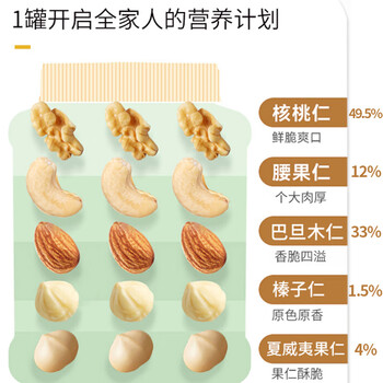 百历坚 罐装混合果仁500g 混合干果腰果核桃仁巴旦木仁年货送礼