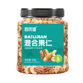 休闲食品---坚果炒货---混合坚果百历坚罐装混合果仁500g