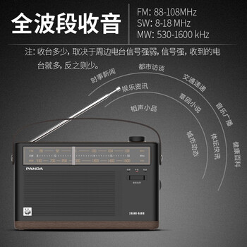 熊猫(PANDA)T-51怀旧复古收音机锂电池 全波段老人礼物礼品指针充电广播半导体