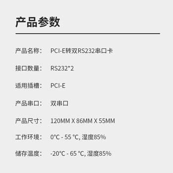 描述:PCI-Express x1 插槽转双RS232接口