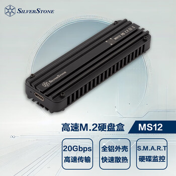 银昕(SilverStone)MS12 M.2 NVMe 移动固态硬盘外接盒(支持USB3.2高速20Gbps/M key)
