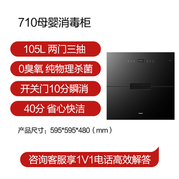 老板(Robam)XB710A母婴消毒柜嵌入式碗柜烘干一体机105L双门三抽无臭氧纯物理杀菌奶瓶