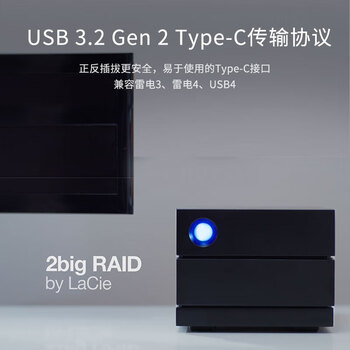 LaCie雷孜 移动桌面硬盘 28TB 企业级 2big RAID 机械硬盘 Type-C/雷电3/4 双2盘位磁盘阵列 CMR垂直