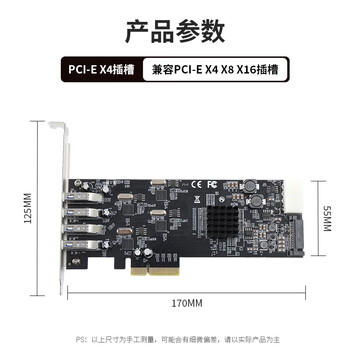 魔羯(MOGE)PCIE x4转4口USB3.0四口独立通道USB3.2 Gen2扩展卡 工业相机20Gbps高速传输MC2025