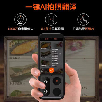 翻译机(含内置电池) × 1、USB数据线 × 1、说明书 × 1、卡针 × 1、挂绳 × 1、皮套× 1、两年语音翻译流量卡× 1、1G流量卡× 1