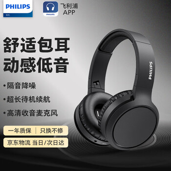 飞利浦(PHILIPS)【高阶升级头戴式蓝牙耳机】TAH5205无线+有线双模式清晰耳麦游戏音乐运动电脑 办公学生礼物黑