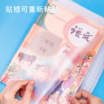 得力(deli)16K/10页透明磨砂自粘包书皮包书膜带切角 附带姓名贴装开学文具/VM403生日礼物