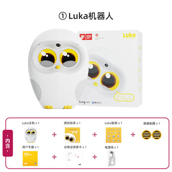 卢卡Luka阅读养成机器人x1、电源线x1、用户指南x1、产品说明x1、产品合格证及保修卡x1、Luka贴纸x1