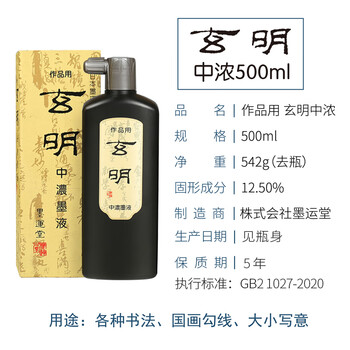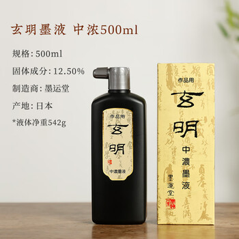 玄明 进口墨汁 中浓墨液 500ml 树脂胶毛笔墨汁 文房四宝书法国画毛笔墨水