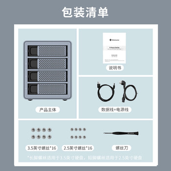 FS4U3-GY*1,USB数据线*1,2.5/3.5英寸硬盘固盘螺丝各16个,说明书*1,螺丝刀*1