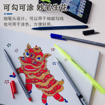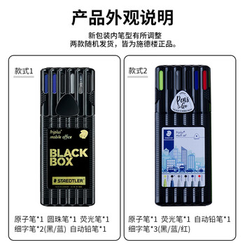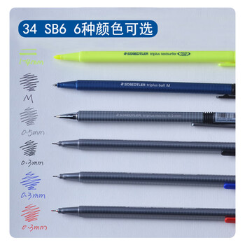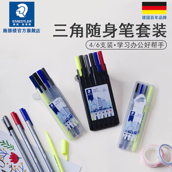 施德楼(STAEDTLER)三角杆多功能书写套装(原子笔+针管笔(黑红蓝)+荧光笔+自动铅笔)办公用品34SB6B