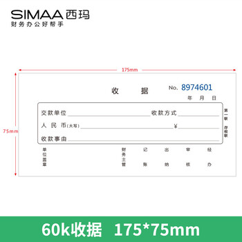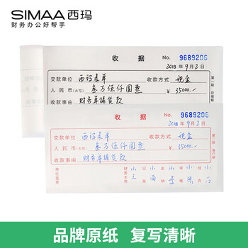 西玛(SIMAA)8205 二联单栏收据(20组)60k 175*75mm10本装 财务收款手写收据单本无碳复写