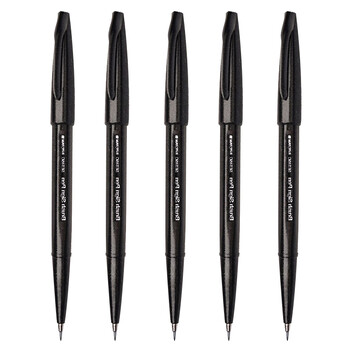 派通(Pentel )彩色软毛笔秀丽笔 弹性笔尖水性笔Touch手帐书信贺卡用 SES15C黑色 5支装