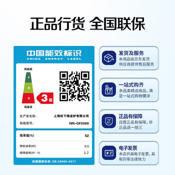 松下(Panasonic)20L家用平板式双烤微波炉五档火力童锁模式微烤一体机NN-GF2000