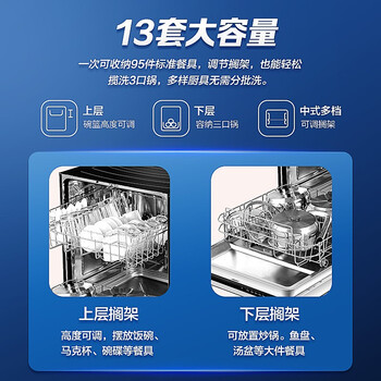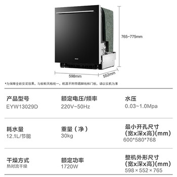 海尔(Haier)洗碗机13套嵌入式80℃双微蒸汽智能开门速干自定义面板全自动洗碗机(含黑色门板) EYW13029D