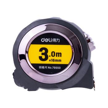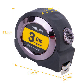 得力(deli)3m全包胶自锁钢卷尺 Ⅱ级精度测量尺子 79550 灰色