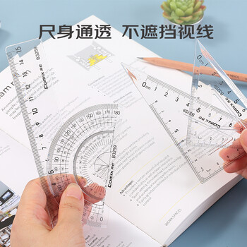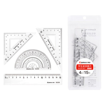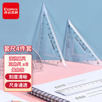 齐心(Comix) 学生办公用品绘画尺子 绘图波浪套尺文具开学必备(波浪直尺+三角尺*2+量角器)B3259