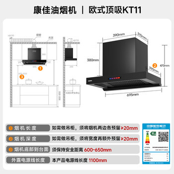 康佳(KONKA)抽油烟机家用欧式顶吸 25立方大吸力小尺寸小户型出租房公寓换新 智控自净清洗CXW-300-KT11(DE60)
