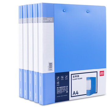 得力(deli)【超级爆款】5只A4金属双强力夹硬文件夹办公用品大容量试卷收纳资料夹诗朗诵签约夹板 33296蓝色