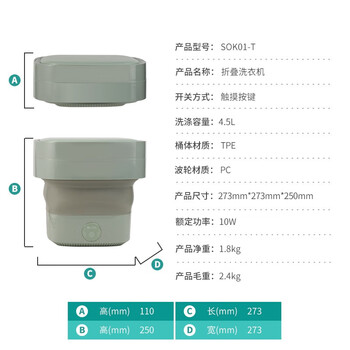 Soseki善思折叠洗衣机便携式迷你小型宿舍洗袜子 浅草绿 SOK01-T