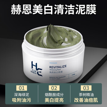 赫恩(H&E)冰海泥清洁美白泥膜150g男女通用清洁面膜吸附油污清洁毛孔