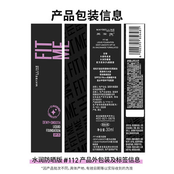 美宝莲FITME粉底液干皮小紫瓶提亮遮瑕干皮水润防晒112 生日礼物女