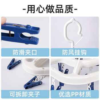 茶花 衣架子带晾衣夹子晾衣架 晒袜子架内衣架凉袜子袜架挂架24夹子蓝
