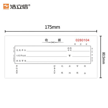 浩立信(LISON)3501-54K 175*80.5 5本/包 50组二联单栏收据 百万位 财务手写收款收据单 无碳原纸 自带垫板