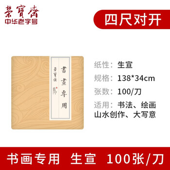 【全网低价】荣宝斋 宣纸 传统手工檀皮安徽泾县装裱收藏送礼书法国画山水写意创作品纸 四尺对开 (书画专用)
