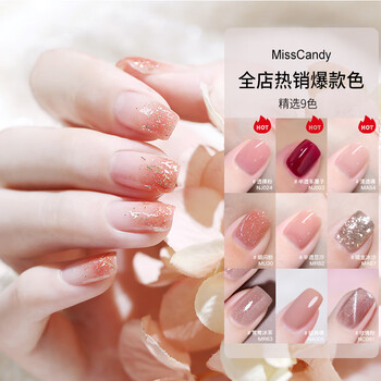 Miss Candy显白15ml指甲油免烤快干可撕拉春夏半透亮片美甲 西柚沙冰NO030