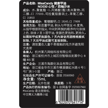 MissCandy糖果小姐健康指甲油快干持久可撕拉免烤美甲 心悦/西柚沙冰NO030*1