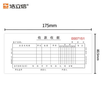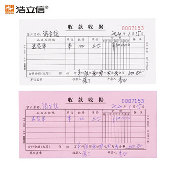 浩立信(LISON)3502-54K 175*80.5 5本/包 50组二联多栏收据 百万位 财务手写收款收据单 无碳原纸 自带垫板