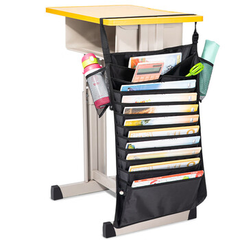 得力(deli)挂书袋课桌书挂袋 升级款交叉收纳书桌挂袋 学生书本收纳神器 加厚款十四层 黑色开学必备