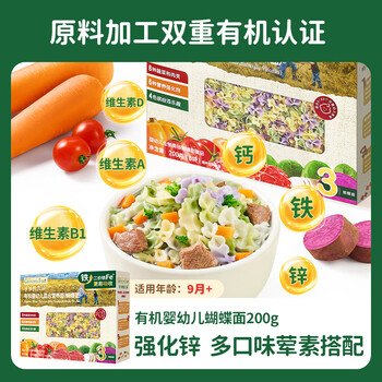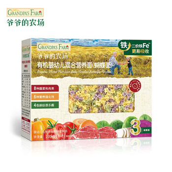爷爷的农场有机婴幼儿蝴蝶面200g 宝宝辅食婴儿面条儿童早餐钙铁锌6-12个月