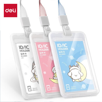 得力(deli)【超级爆款】卡通学生证件工作牌透明卡套校园卡公交卡套饭卡地铁身份证挂绳款 初高中蓝色64804