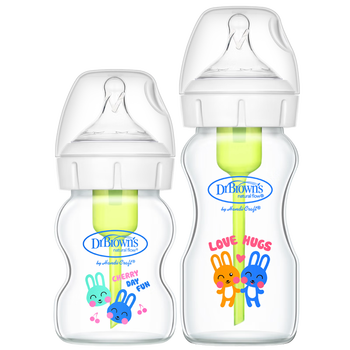 布朗博士防胀气奶瓶套装新生儿专用(0-3月玻璃150ml+0-3月玻璃270ml)萌兔